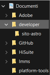 Come prima cosa, tenendo aprto il prompt, creiamo la cartella dove verrà creato il nostro sito web. Per comodità, ti consiglio di possizionare questa cartella nella direcotry Documents (in particolare creiamo una cartella dentro Documents dove tenere tutti i nostri lavori) quindi, tramite prompt di Node, andiamo a crearla.
