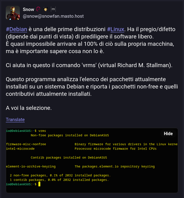 ‘vrms’ (virtual Richard M. Stallman).